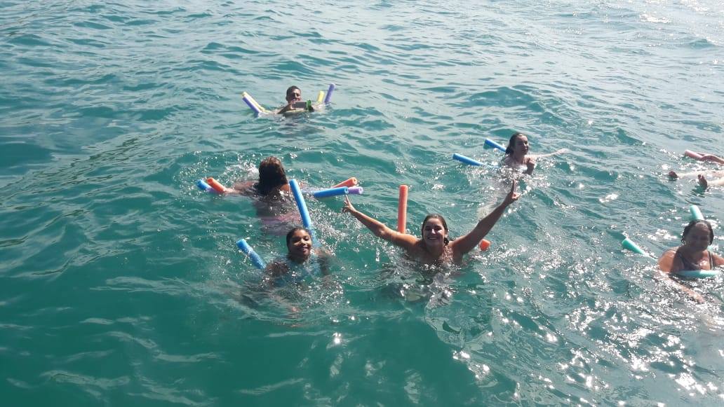 - Embarque para passeio com duração de 2:30h (3 paradas para mergulhos, sem píer de atracamento)