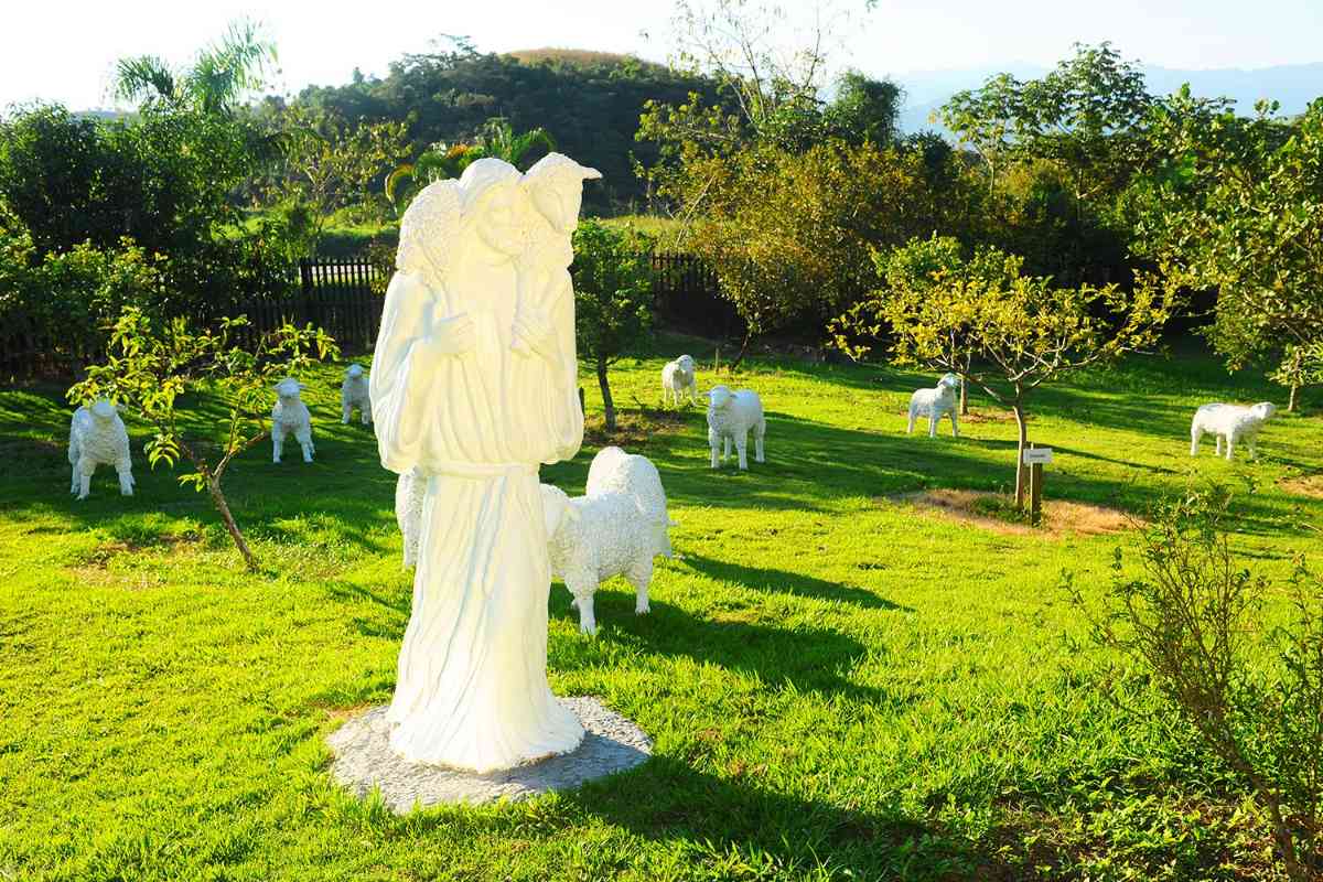 Um percurso em meio à natureza, com esculturas em tamanho real, que transforma a caminhada em uma jornada de fé, contemplação e reencontro com a Palavra.